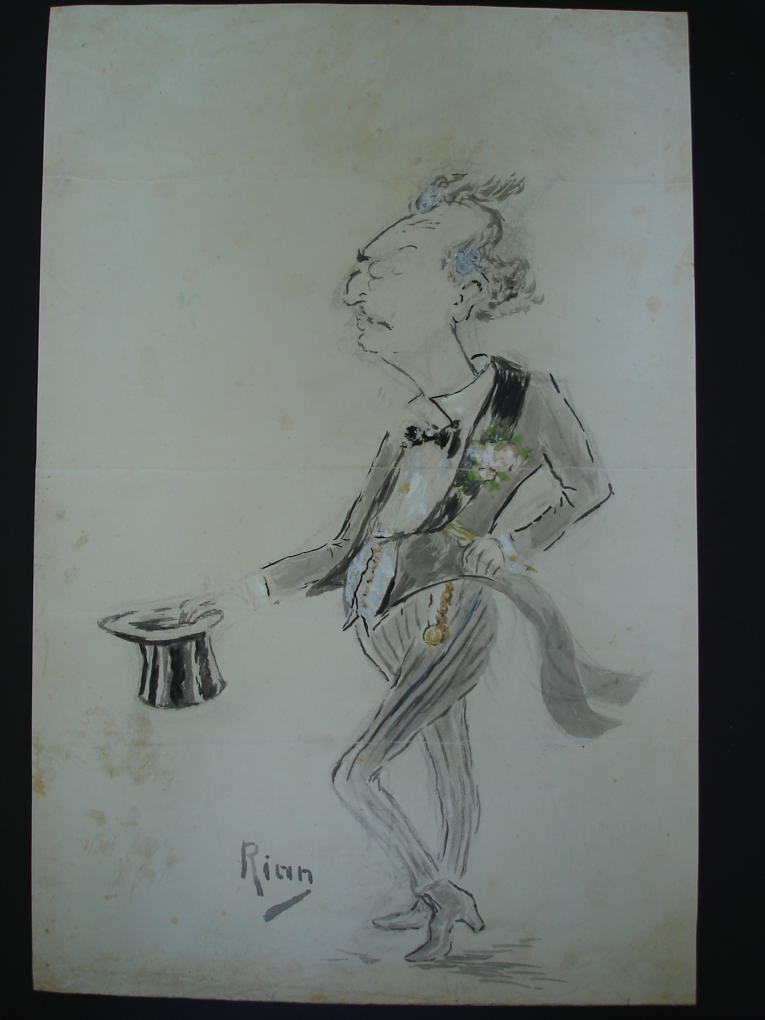 Pinheiro Machado, de corpo inteiro segurando uma cartola.
