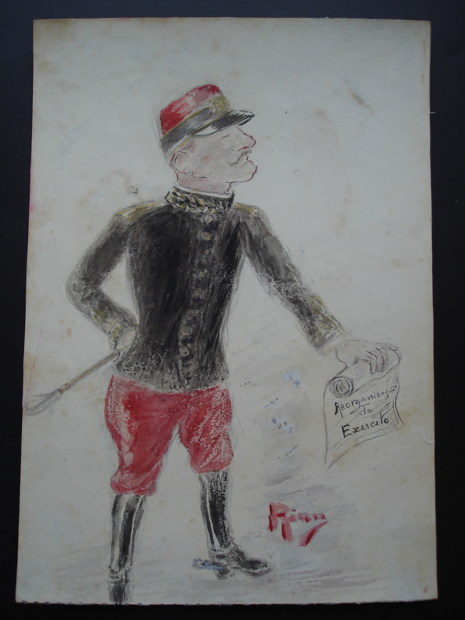 Item NT11 (032.248) - Caricatura do Marechal Hermes Rodrigues da Fonseca alusiva à reorganização do Exército, efetuada quando Presidente da República
