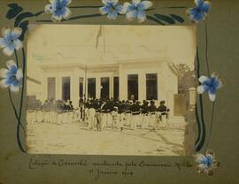Banda de música na frente do prédio da Estação do Telégrafo de Corumbá.