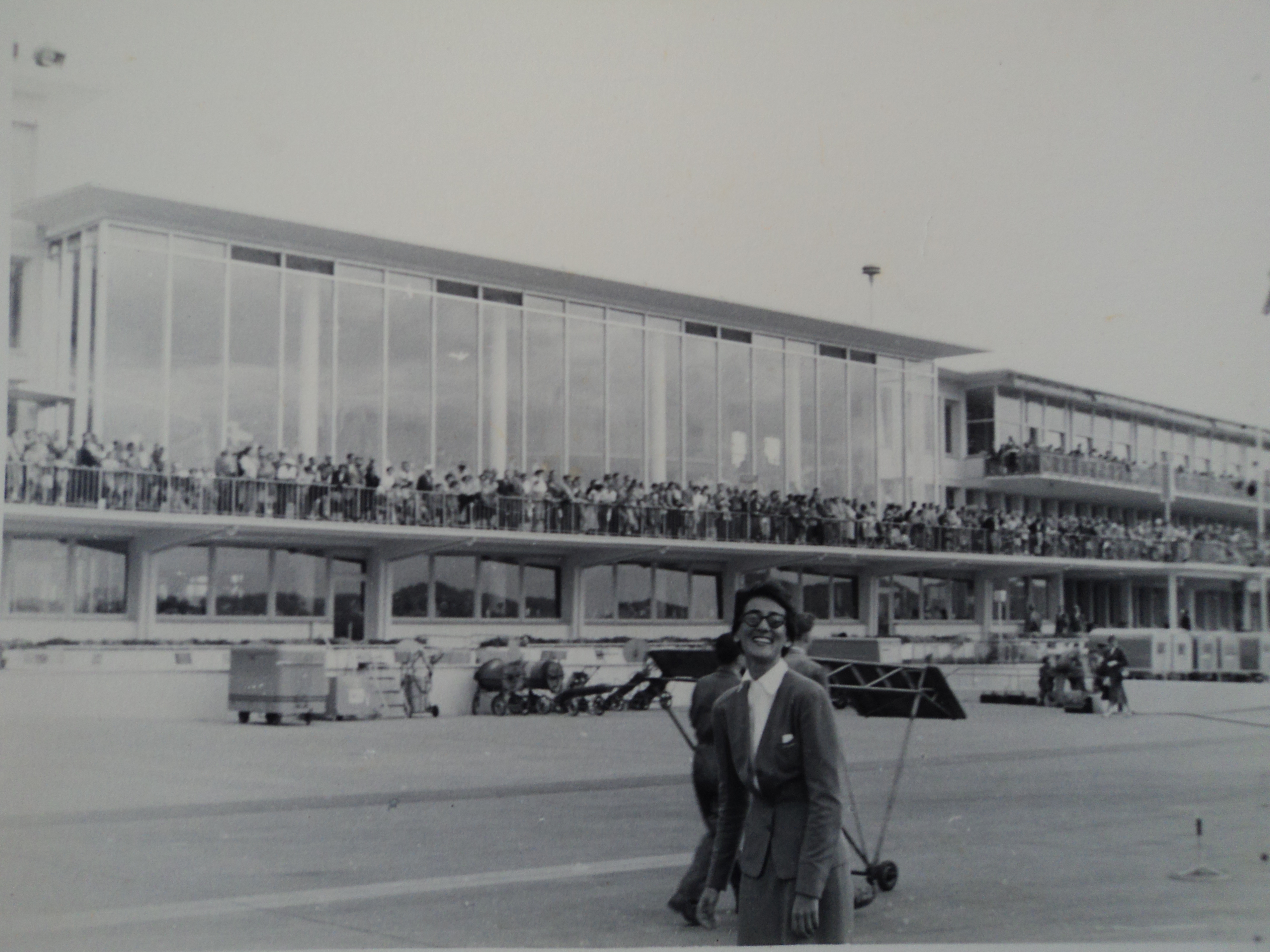 Fotografia de funcionária da Panair no aeroporto de Zurique