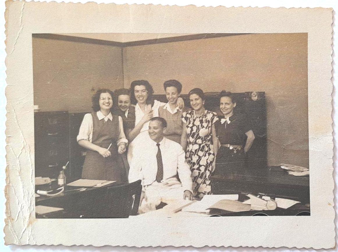Item PBf06 (309.703) - Fotografia de grupo de funcionários (seis mulheres e um homem)