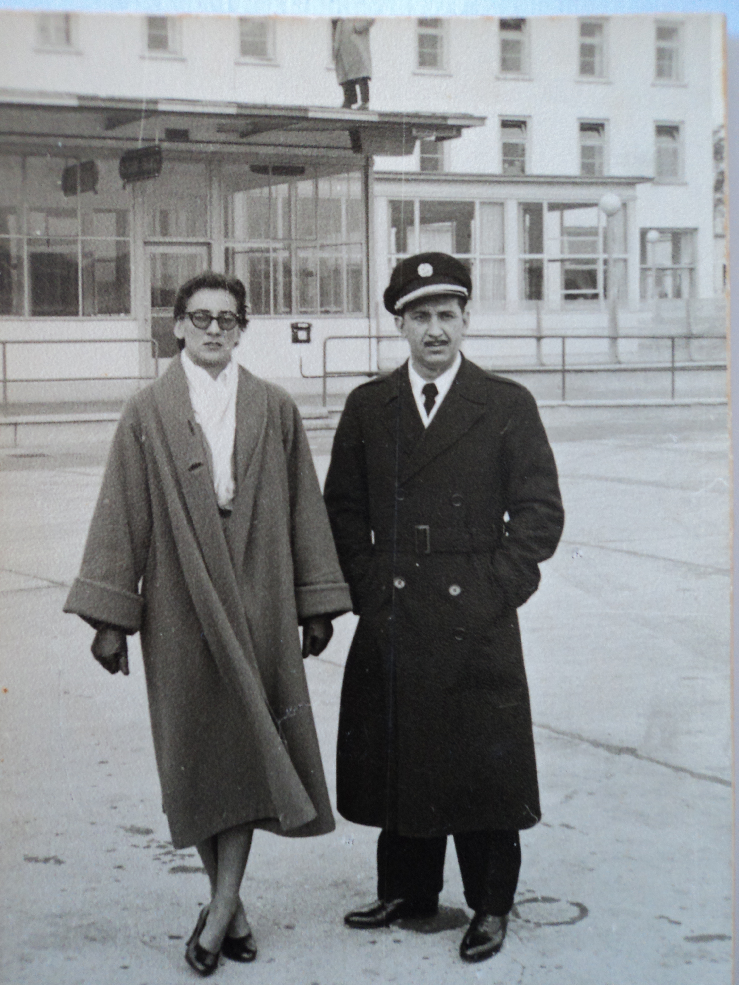 Fotografia de um homem (cap. Abreu) e uma mulher, funcionários da Panair em Frankfurt, em 1954.