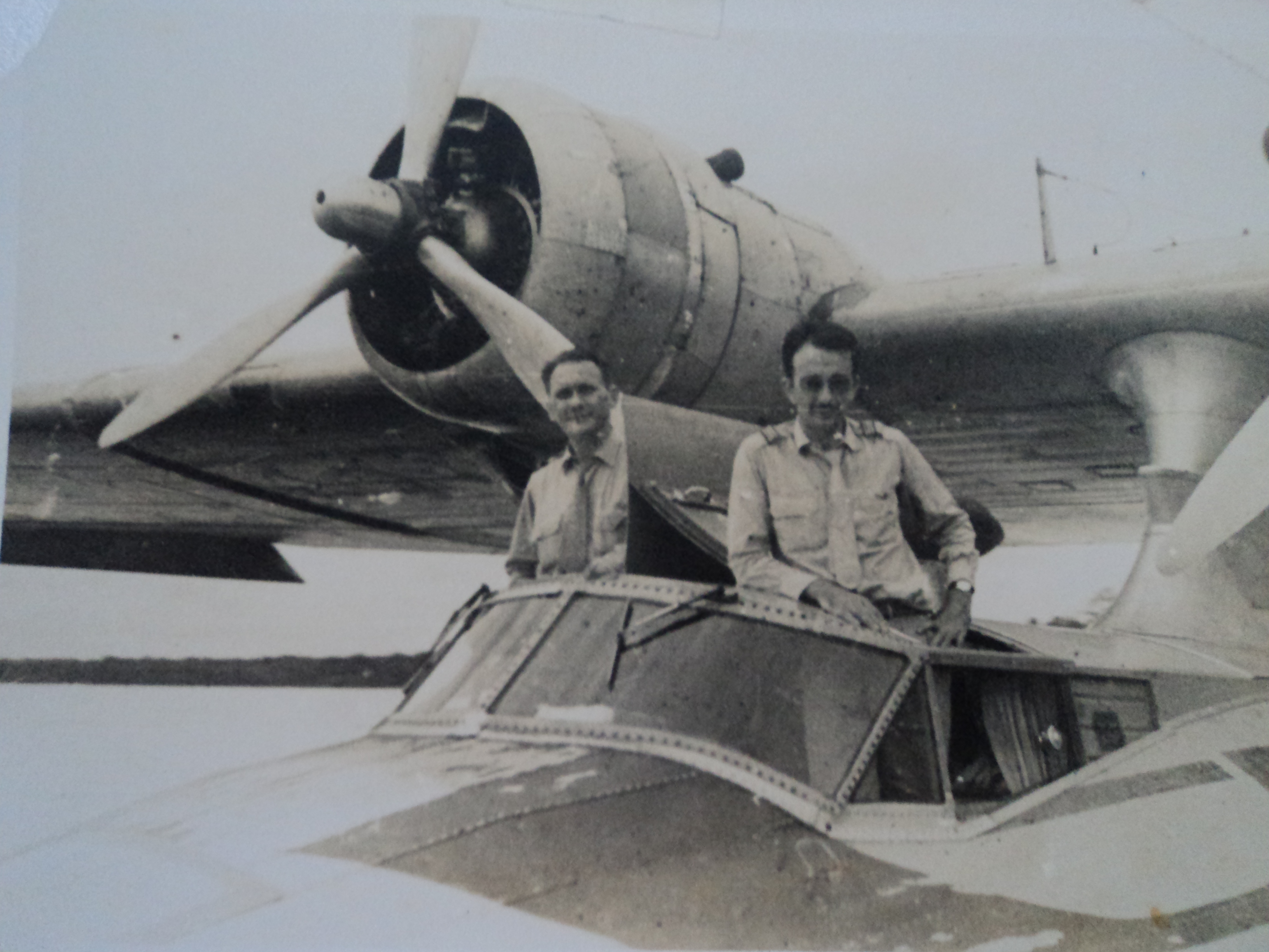 Fotografia do comandante Oracy Azevedo e outro funcionário não identificado em aeronave da Panair do Brasil S. A