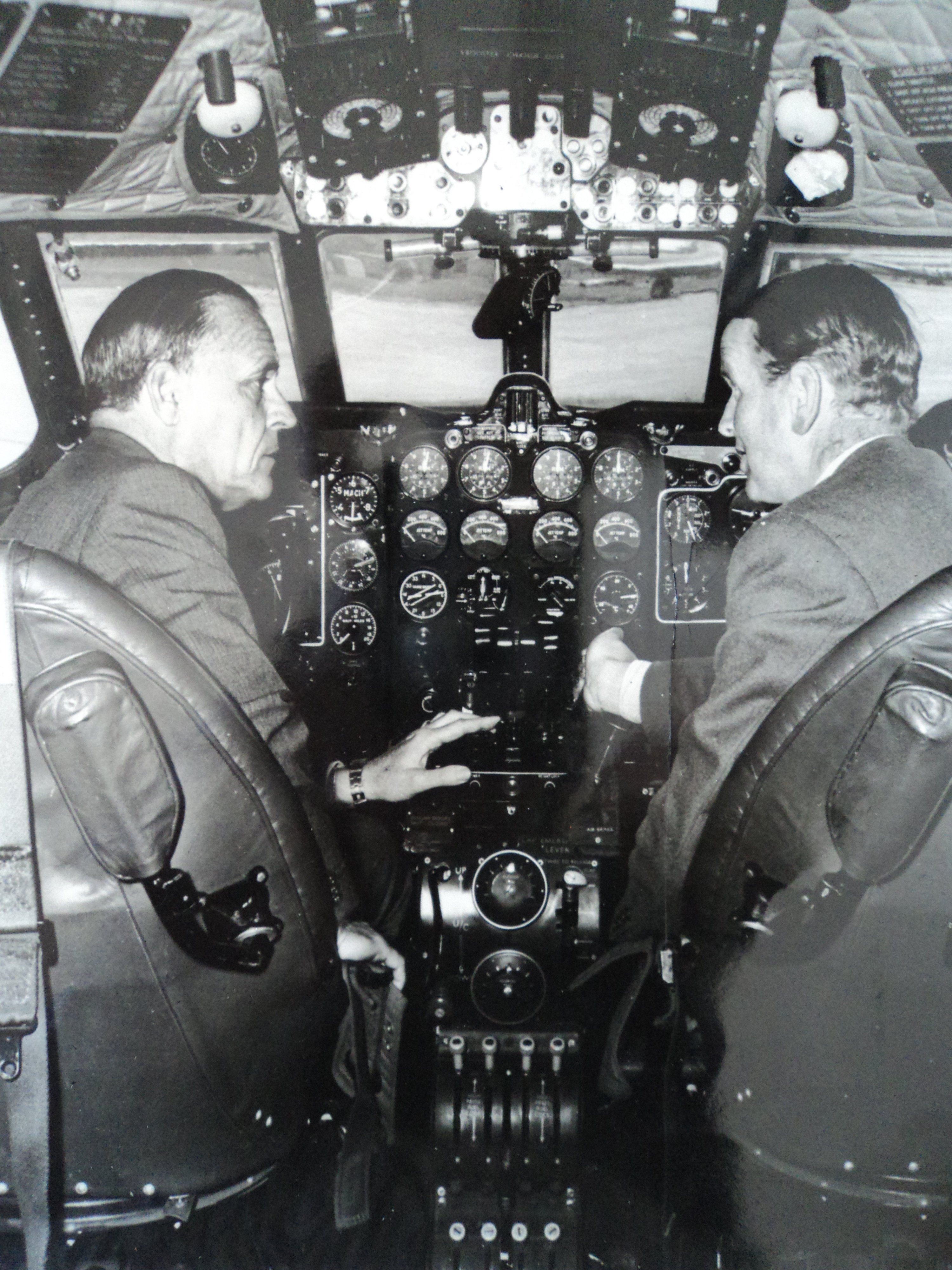 Fotografia do Paulo Sampaio, presidente da Panair do Brasil, na cabine de aeronave, em 07/07/1954. Foto assinada por Keystone Press Agency.