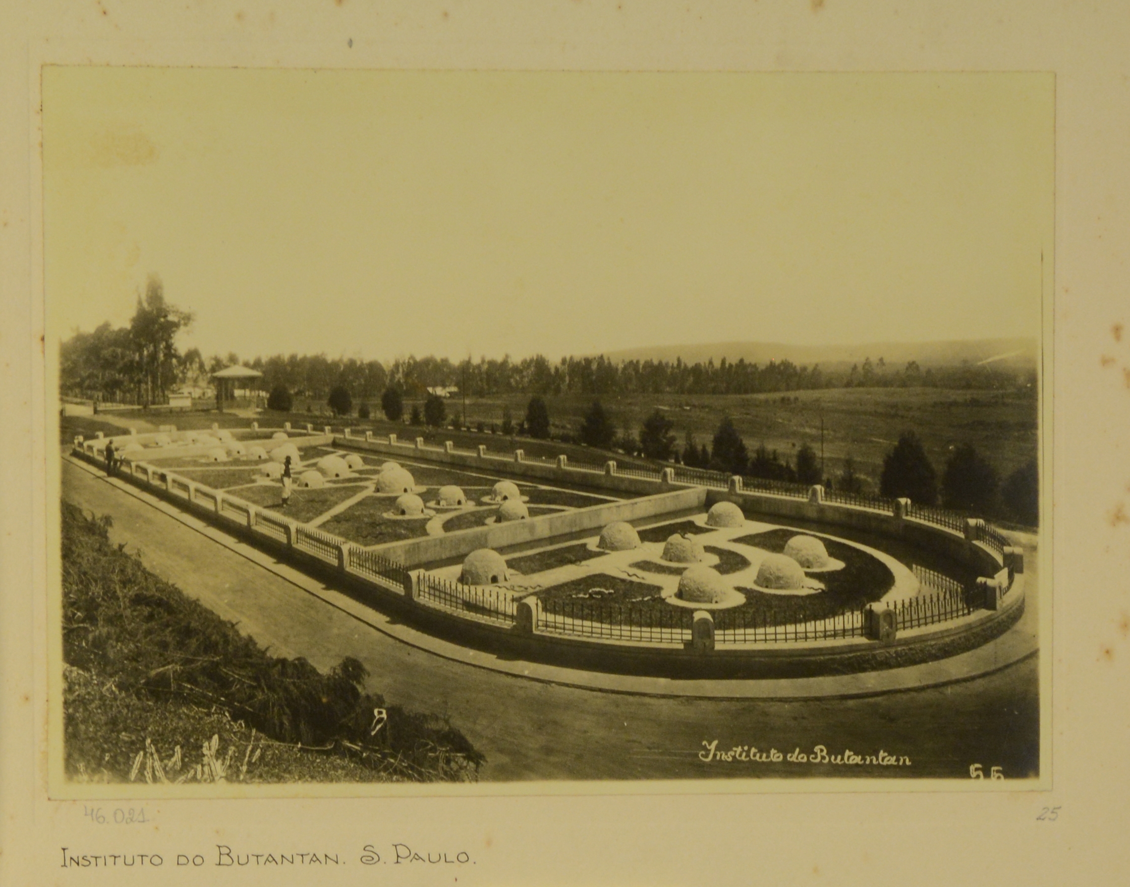 Local de criação de cobras do Instituto Butantã. Vê-se cobras e pessoa cuidando delas.