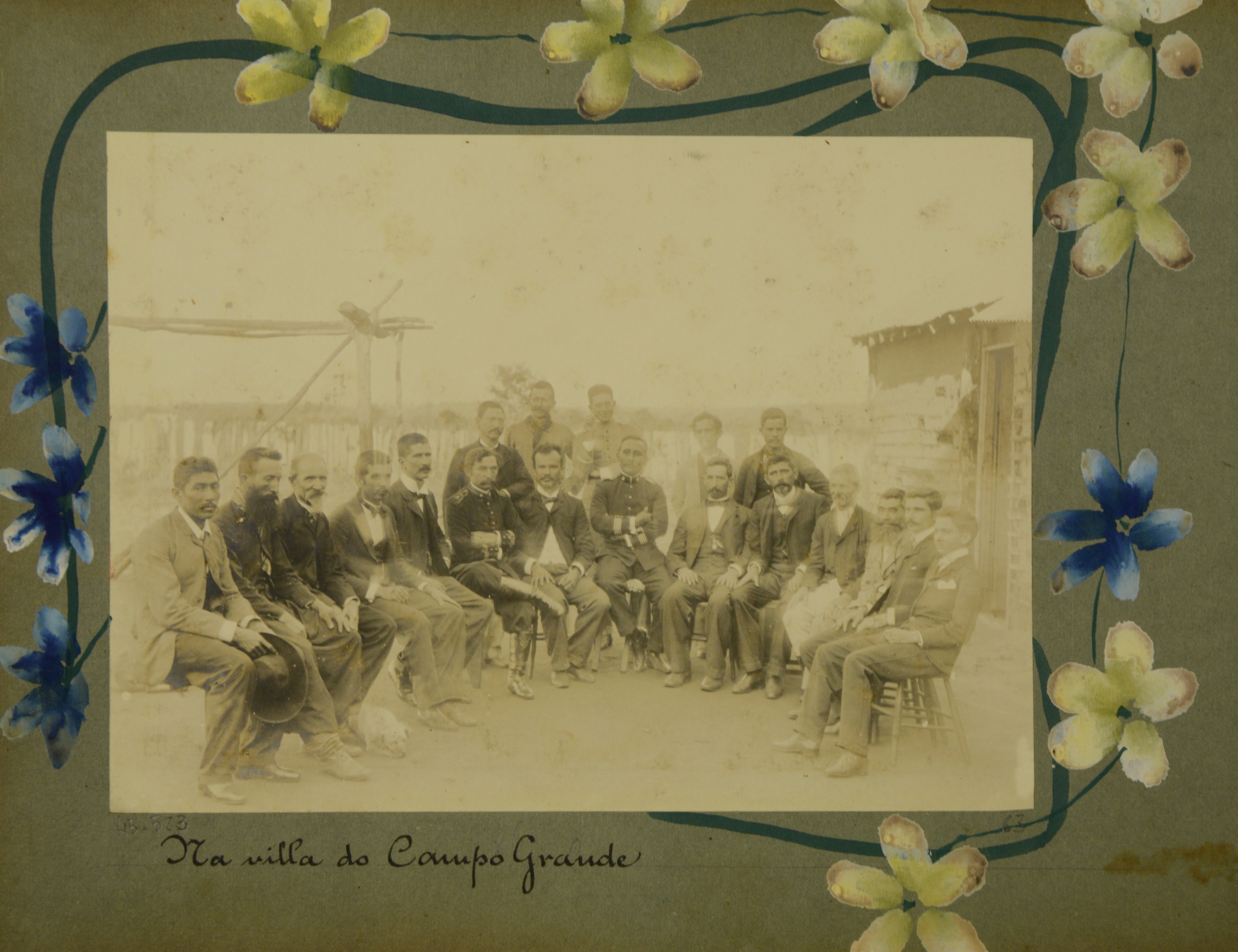 19 homens, a maioria sentados, posando para a fotografia. Rondon é o sétimo sentado da direita para a esquerda.
