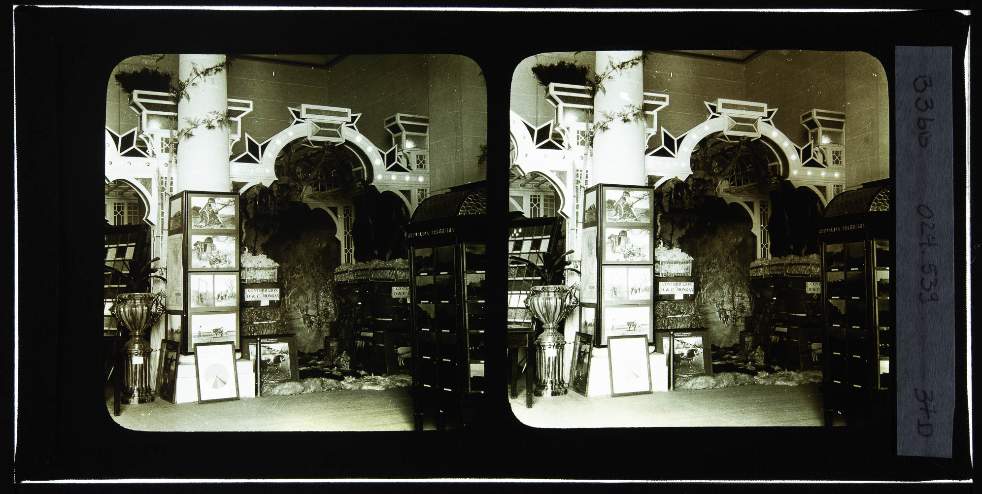 Vistas do Pavilhão Argentino. Interiores de stands de exposição.