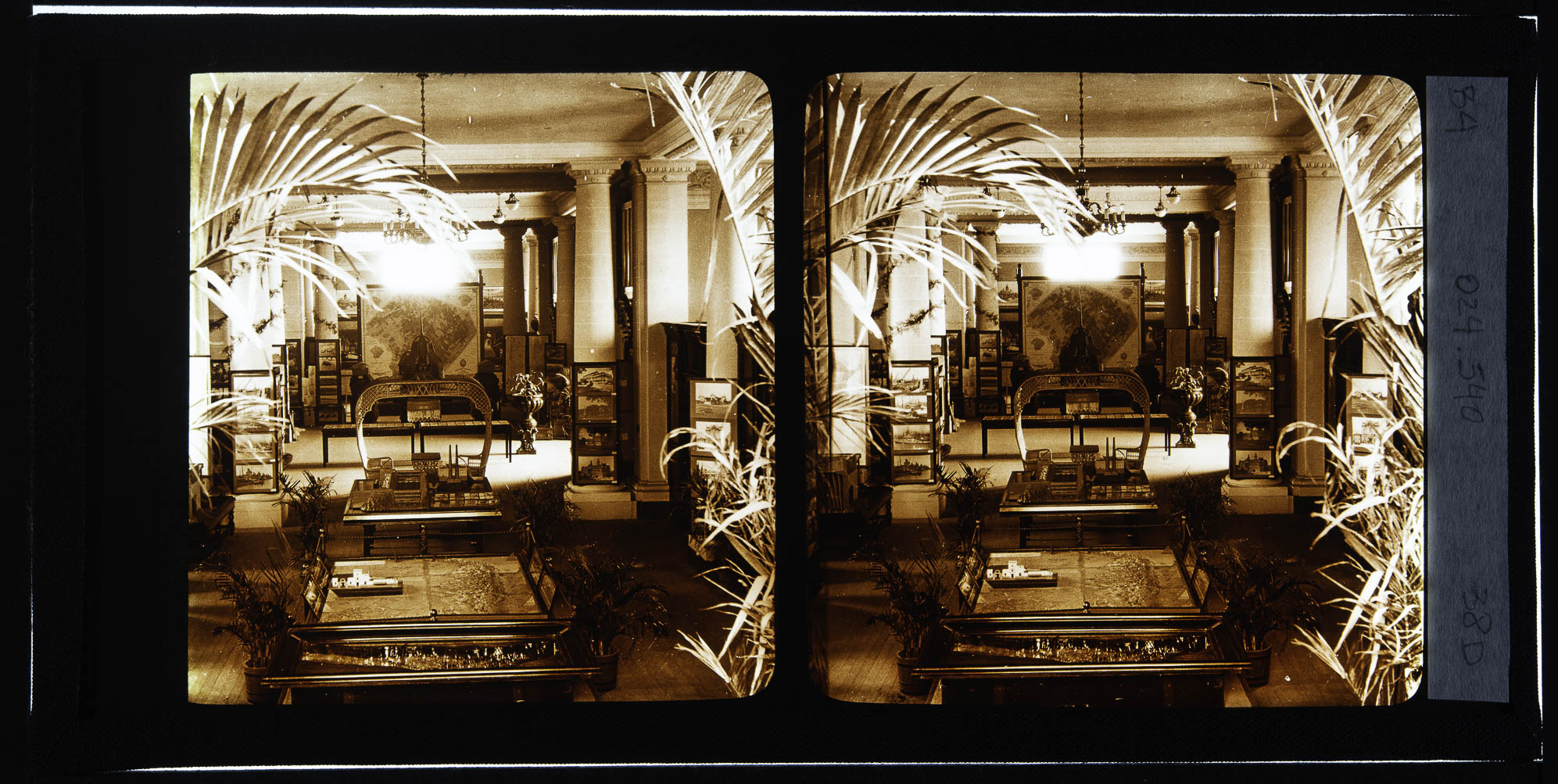 Vistas do Pavilhão Argentino. Interiores de stands de exposição.