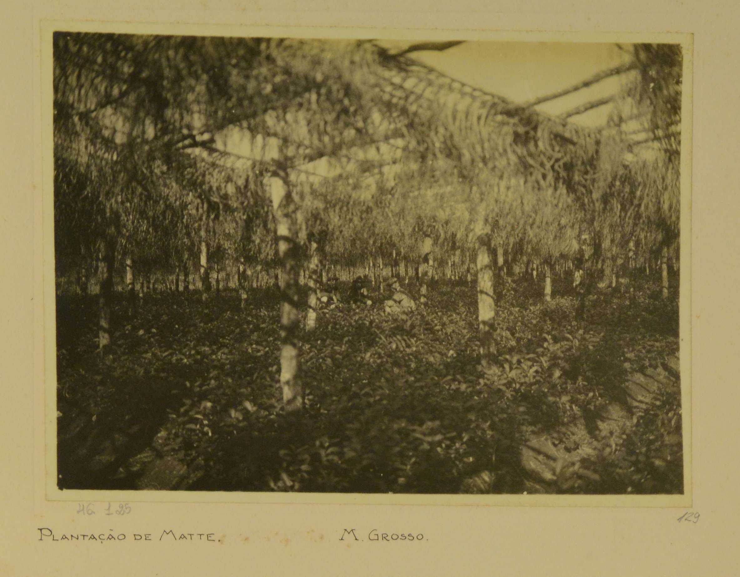 Plantação sob um caramanchão onde se encontram folhas de erva-mate para secarem.