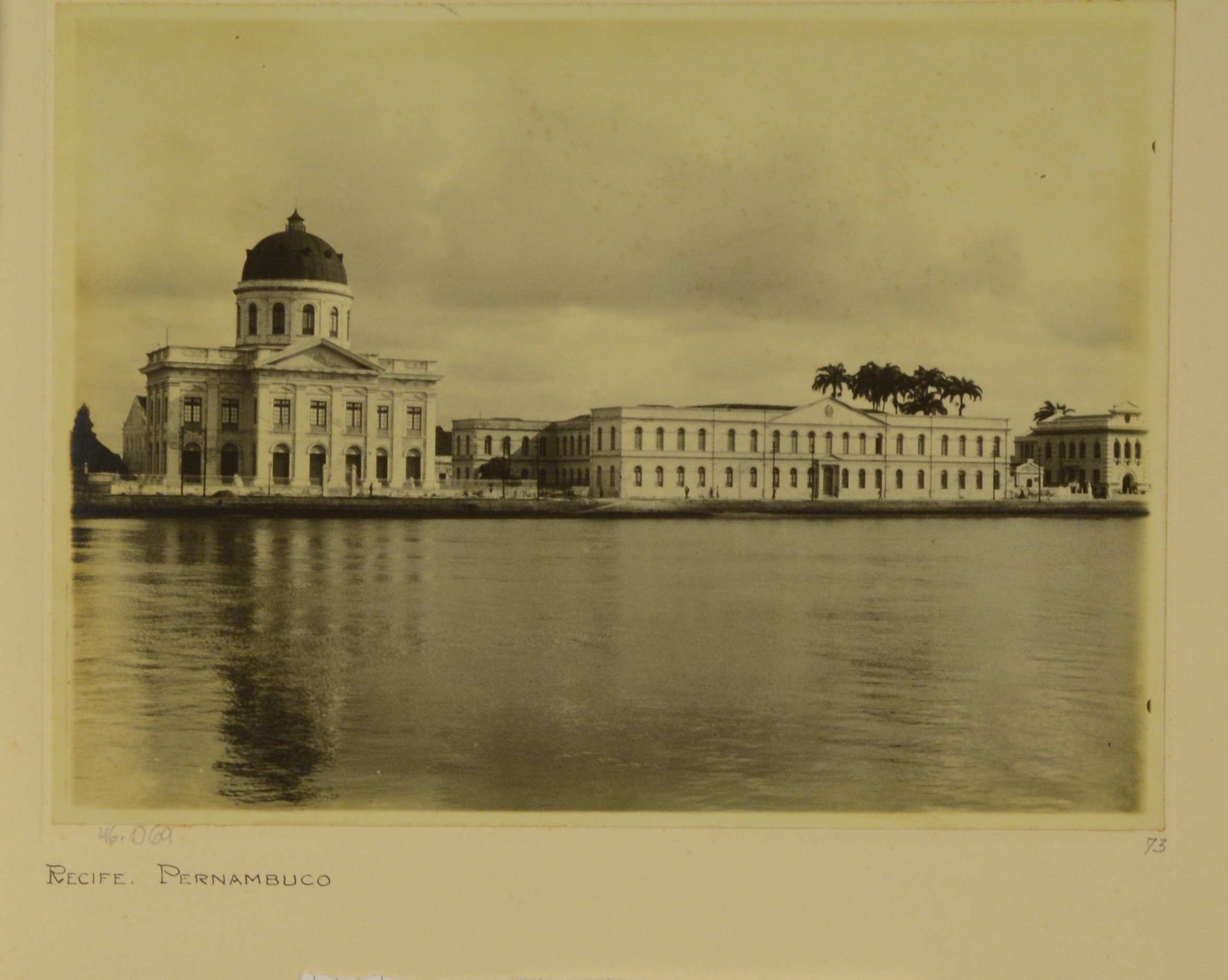 Em primeiro plano, as águas do rio Capiberibe. Ao fundo alguns prédios, provavelmente, públicos de Pernambuco.