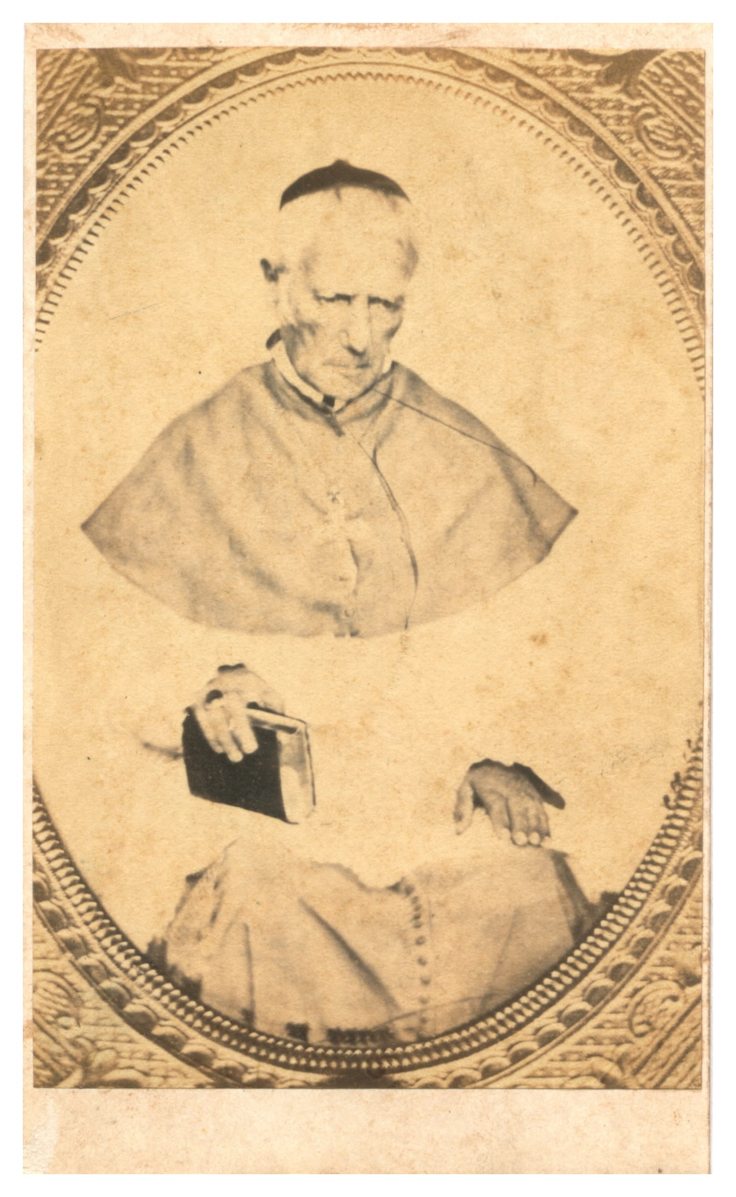 mais de meio corpo, sentado, com as vestes eclesiásticas