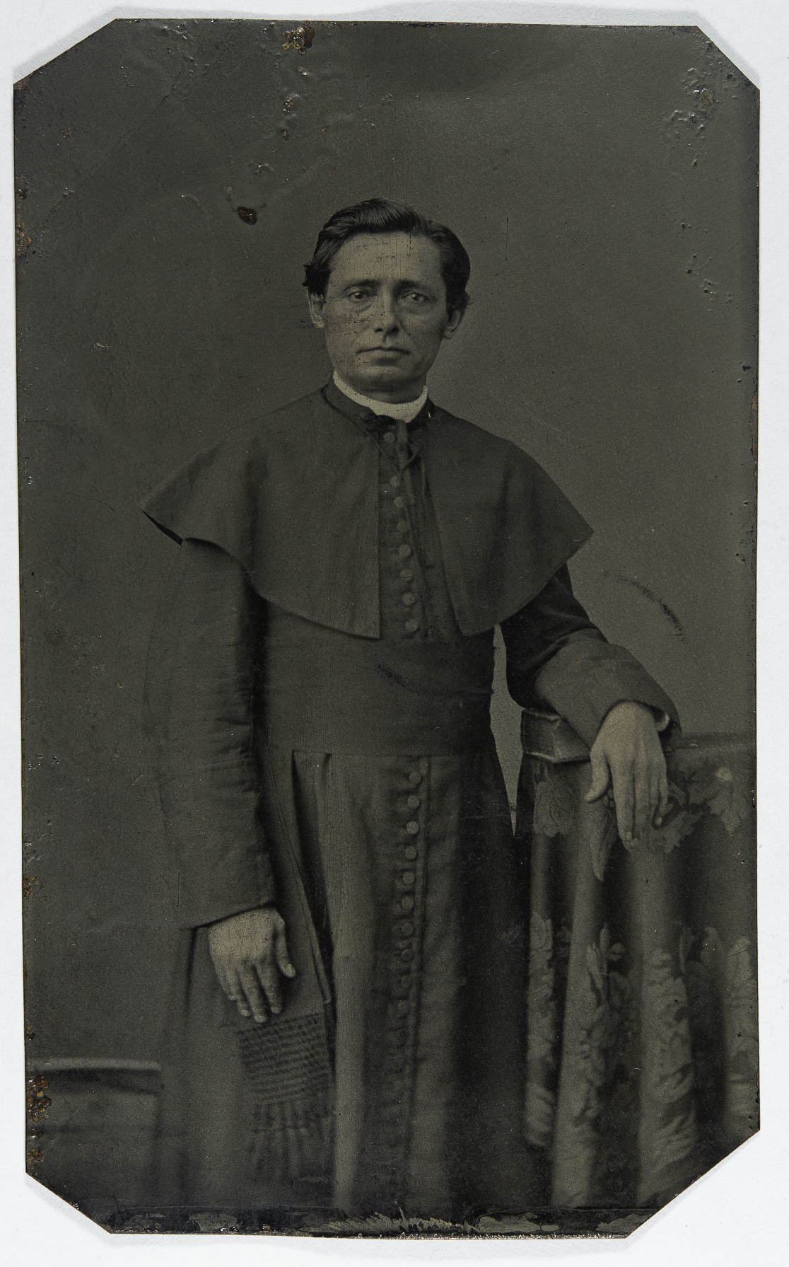 em mais de meio corpo, de pé, com as vestes eclesiásticas