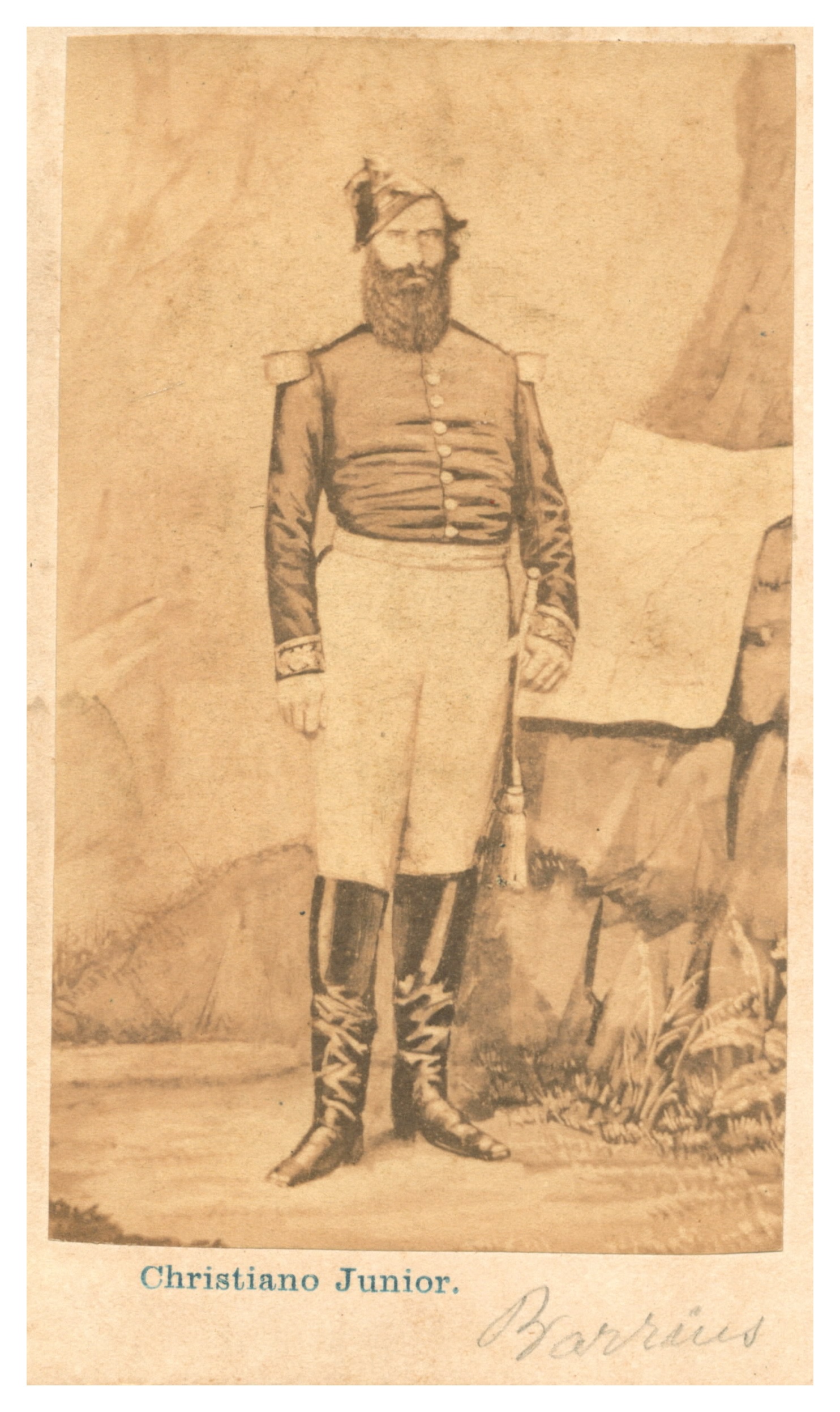 José Christiano de Freitas Henriques Júnior (Ilha das Flores, Arquipélago de Açores, Portugal 1832 - Assunção, Paraguai 1902). Fotógrafo. Imigra para o Brasil em 1855 e fixa-se em Maceió, onde começa a atuar como fotógrafo. Provavelmente no início da década de 1860, transfere-se para o Rio de Janeiro, e se associa a Fernando Antônio de Miranda no estúdio Photographia do Commercio. Entre 1866 e 1875, é sócio de Bernardo José Pacheco na firma Christiano Jr. & Pacheco, na mesma cidade. Na época, retrata pessoas de origem africana, escravas ou libertas, enfocando características faciais ou simulando suas atividades profissionais em estúdio. Além dessas imagens, seu ateliê comercializa retratos em vidro (ambrótipo), reproduções de gravuras, paisagens para estereoscópio,1 fotografias ampliadas sobre lenços, porcelana e marfim, cartes-de-visite de monarcas, militares, literatos e outros. Em 1866, conquista medalha de bronze na Exposição Nacional do Rio de Janeiro. No fim da década de 1860, muda-se para Buenos Aires, onde seus negócios prosperam e chega a manter, simultaneamente, dois estúdios. Conquista medalha de ouro na Exposição Nacional de Córdoba, em 1871, e na Exposição Científica de Buenos Aires, em 1876. Em 1876 e 1877, publica duas edições dos álbuns Vistas y Costumbres de la Republica Argentina. No fim dos anos 1870, vende seu estabelecimento e seu acervo de negativos para o fotógrafo inglês Alejandro S. Witcomb (1835 - 1905). Christiano Júnior é considerado um dos mais importantes fotógrafos que trabalham na Argentina no século XIX.