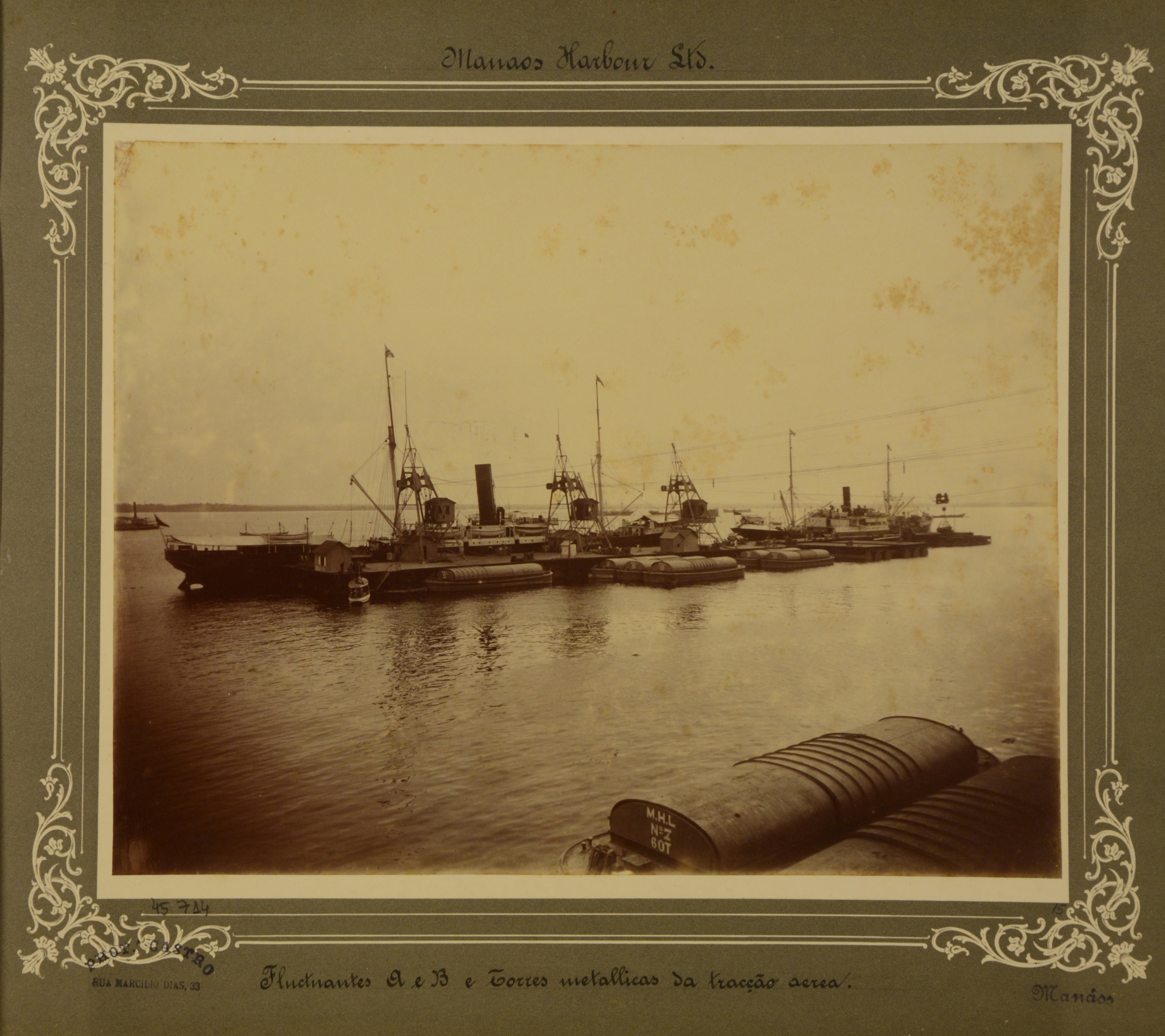 Embarcações ancoradas no flutuante. As torres sobre o flutuante.
